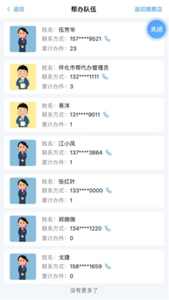 可通過平臺查看幫辦人員基本信息,姓名、頭像、職務(wù)等。群眾/企業(yè)可自行選擇幫辦人員。