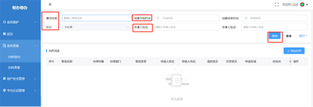 工作人員可在后臺查看當(dāng)前所有待辦件,確保辦件過程透明,便于監(jiān)督和管理。